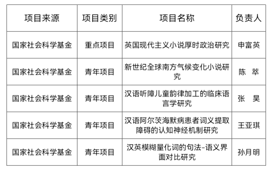 近日,全国哲学社会科学规划办公室公示了2025年国家社会科学基金年度项目的立项名单。新葡萄88805官网五项课题喜获立项,其中重点项目1项、青年项目4项,涉及语言学、外国文学等多学科,立项数量在全国外语学科中名列前茅。立项项目信息如下: