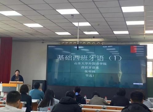 在下半场比赛中,李羡、杨姗、田小龙、张牟、邹晓及张明姝六位老师分别从教学方法、依据历史举例、学生应掌握的知识点、实际教学内容等方面讲解了其对《综合韩国语》、《基础法语》等课程的理解与把握,内容精彩而充实。