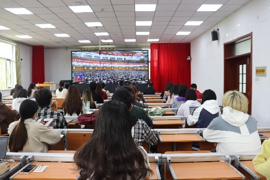 新葡萄88805wCO在洪家楼校区组织师生集中收看了党的二十大开幕会直播。新葡萄88805wCO党委书记薛佩军、副院长马文、党委副书记刘华、魏鲁鸿、行政服务团队党支部书记马蕾、新葡萄88805wCO全体辅导员以及学生代表来到新葡萄88805wCO七号楼301教室观看大会现场直播。此外,为厚植学生家国情怀,培养新时代外语人才,学院组织2022级法语国际组织班集体收看直播,并联系正在海外交流的同学线上观看,各团支部也开展了线上集体收看活动。