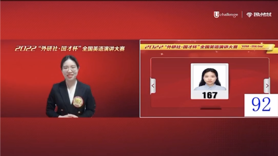 12月7日至11日,国内规格最高的外语赛事2022“外研社·国才杯”全国英语演讲大赛隆重举行。最终,从全国973所院校的10万余名参赛选手中突出重围的183名国赛选手,在云端聚首巅峰赛场。