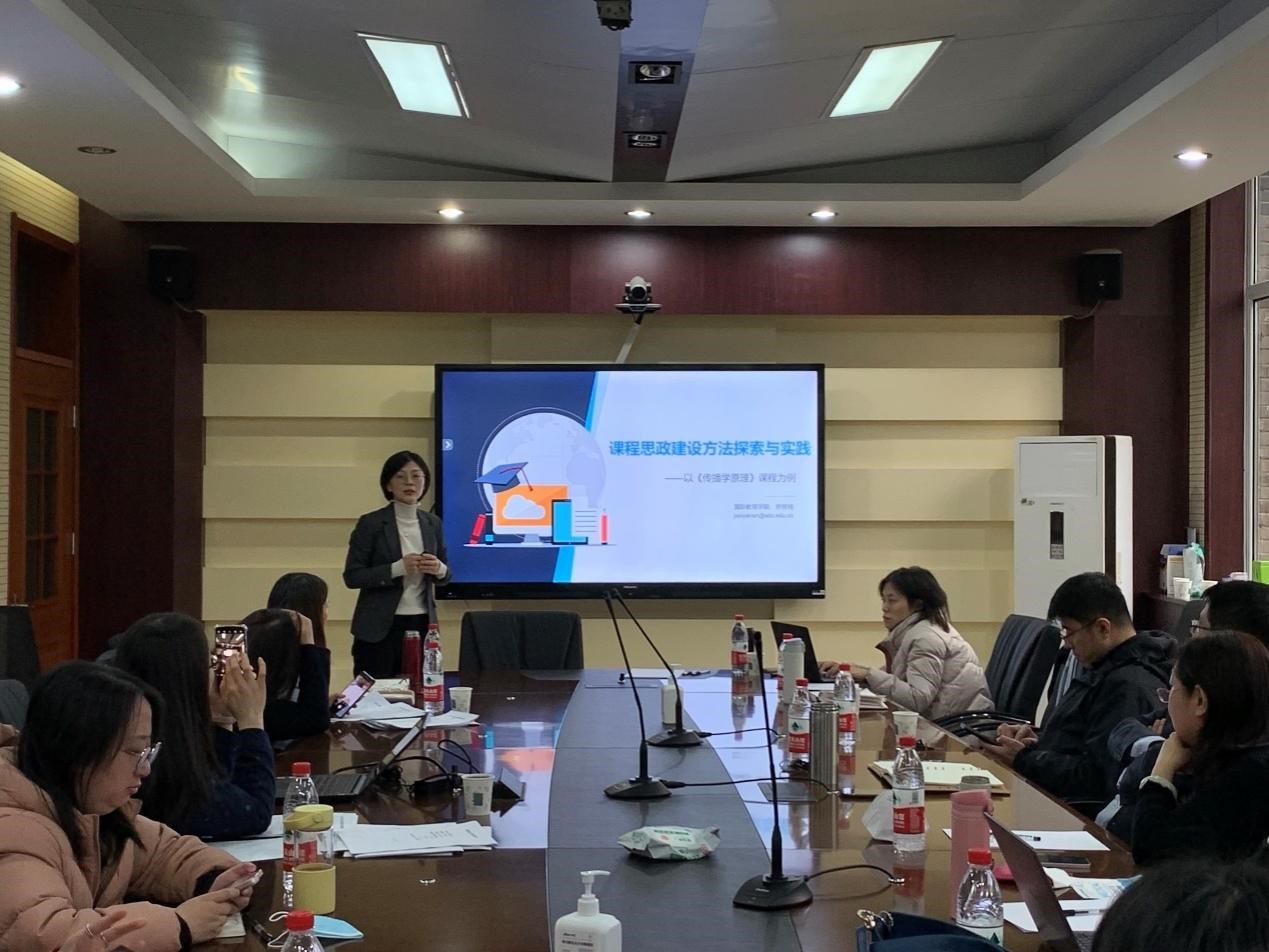会上,三位专家先后将融合课程思政内容和自身专业领域的优秀案例进行拆解分析,聚焦课程思政在实际教学中的结合与应用,围绕教学目标、教学内容、教学设计、课堂评价等方面详细说明应如何在课程设计中挖掘课程思政、如何在参赛申报时展示课程思政。随后,学院报名参与2022年度课程思政示范项目推选活动的四位教师简单汇报了各自课程建设的准备情况,并在几位专家的指导下对申报书、支撑材料等进行了有针对性地修改。互动交流环节中,三位专家同新葡萄88805官网教师就如何明确自身课程定位、如何衔接热点内容与思政教学等问题展开了充分的探讨与交流。与会教师们表示,通过聆听专家分享并与之交流,对课程思政有了全新的认识和具象的经验,今后会在实际课程建设中加以运用,切实提高自身课程思政建设水平。最后,刘洪东对三位专家的指导和支持表示感谢,并希望以此次示范课程的申报为契机推动学院课程思政的建设。