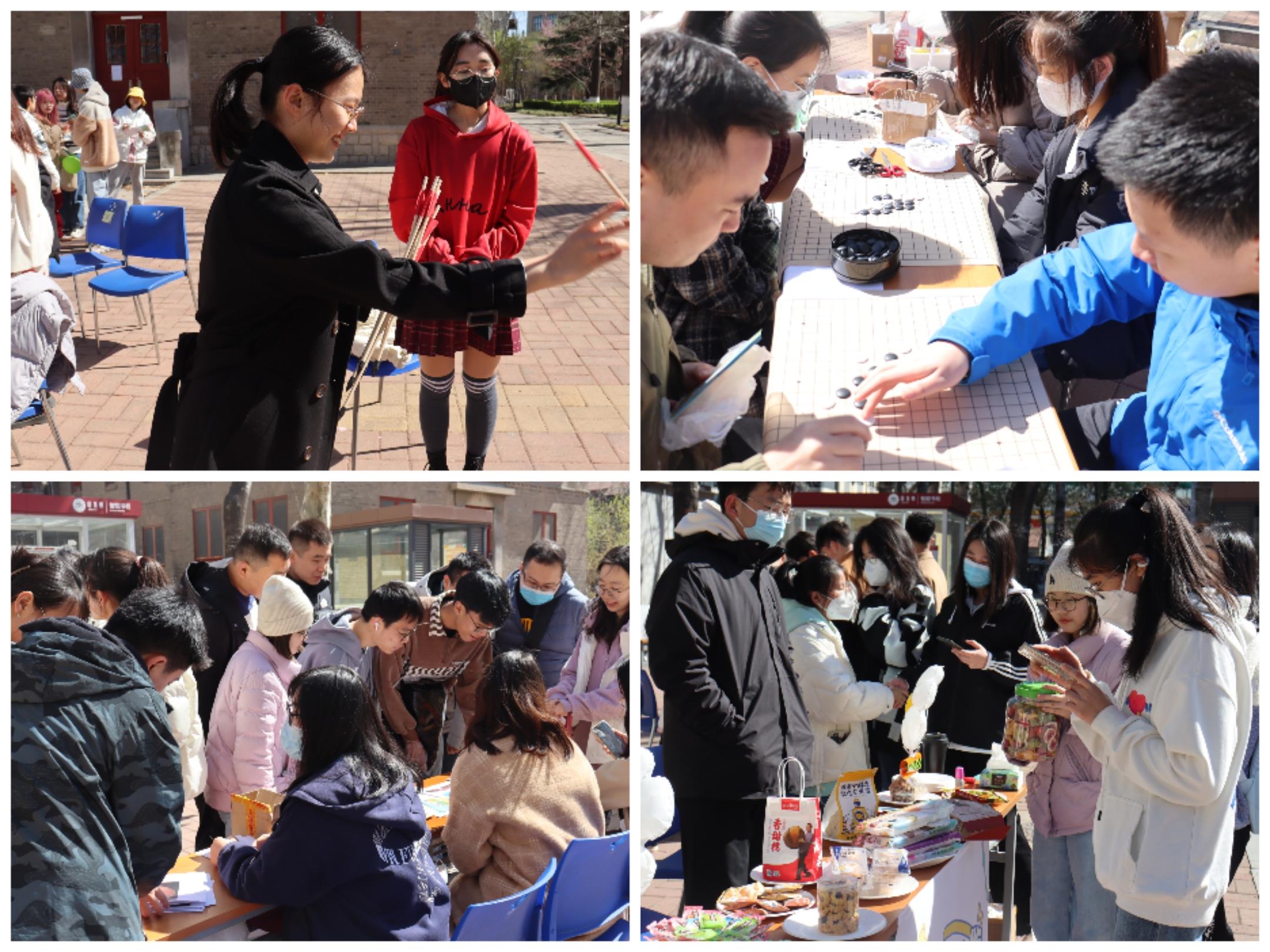 棋类对弈、看图猜谜、特色美食展和投壶游戏等趣味活动也在小广场上热烈进行着。展台处将中华优秀传统文化与世界特色文化交融结合,将历史元素以外文节窗口展现,同学们沉浸在学习中国传统文化知识的氛围当中,收获着独属于外文节的快乐。