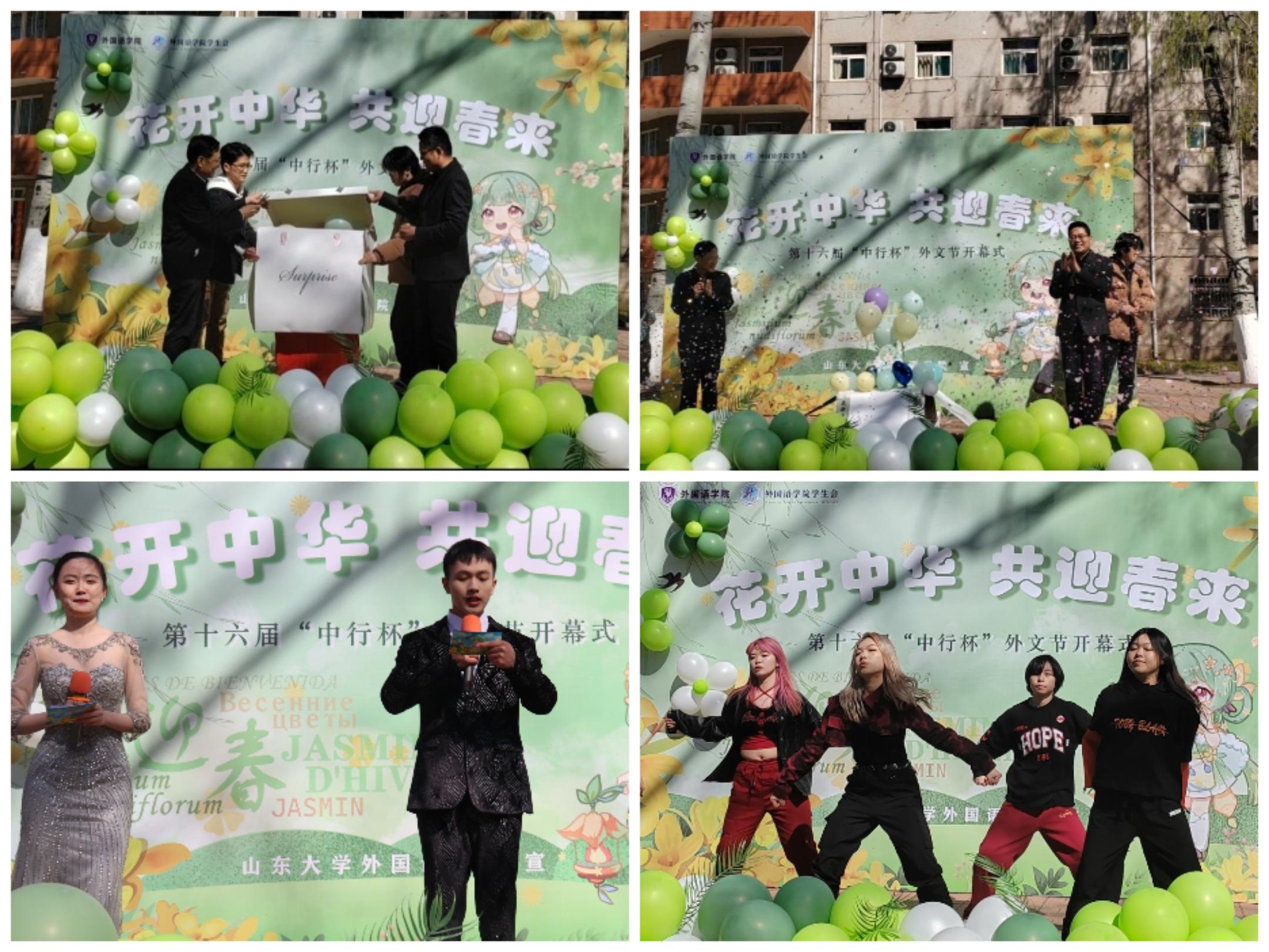 3月12日上午,新葡萄88805wCO第十六届"中行杯"外文节开幕式在洪家楼校区小广场举行。新葡萄88805wCO党委书记薛佩军、党委副书记魏鲁鸿、各年级辅导员出席开幕式,各年级学生积极参与活动。