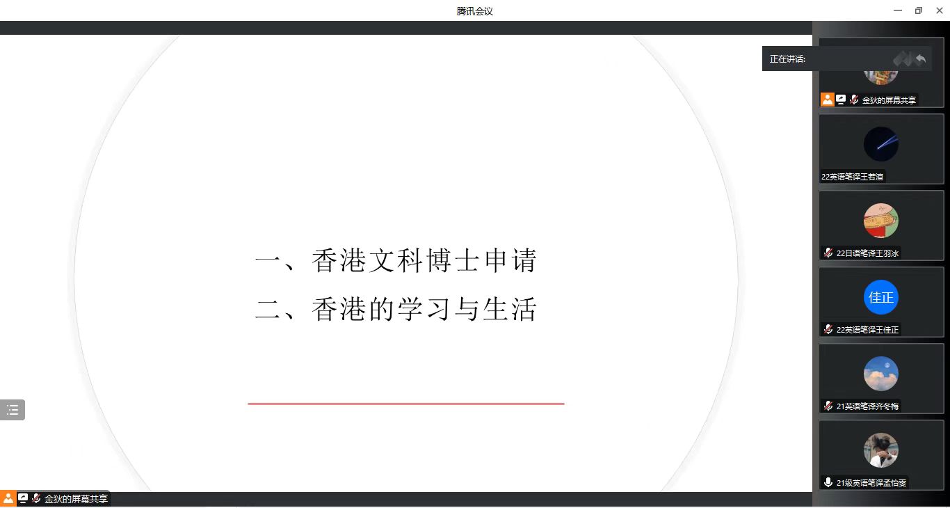 新葡萄88805wCO“语翼论坛”邀请各领域资深专业人士,为同学们带来学术研究、文学文化、学业规划等方面的指导,有助于同学们提高专业素养,扩宽学术视野,追踪学科前沿,成为新时代的外语人才。本次讲座内容生动详实,拓展了学生们的知识面,使参会学生了解了香港、英国留学的申请流程,也收获了不少留学后的实用信息,有助于拓宽视野、提升自我留学竞争力,进一步做好学业规划。