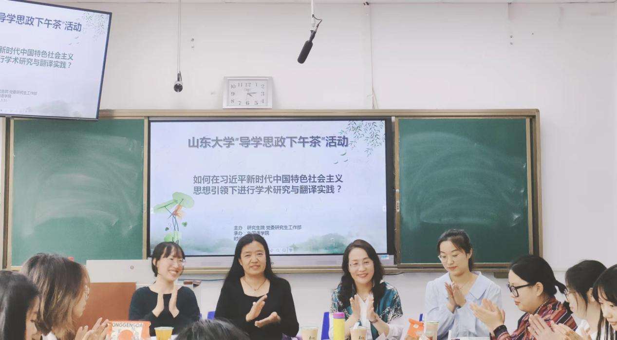 为落实落细导师立德树人首责,切实加强研究生思想政治教育,纵深推进“三全育人”,5月11日下午,新葡萄88805wCO在洪家楼校区举办2023年第一期“导学思政下午茶”活动。本期活动以“如何在习近平新时代中国特色社会主义思想引领下进行学术研究与翻译实践”为主题,共邀请新葡萄88805wCO教授、硕士生导师杜新宇,新葡萄88805wCO副教授、硕士生导师高云两位嘉宾,新葡萄88805wCO研究生辅导员张新苑主持,新葡萄88805wCO研究生辅导员李雪倩与各专业的25名研究生代表参与。