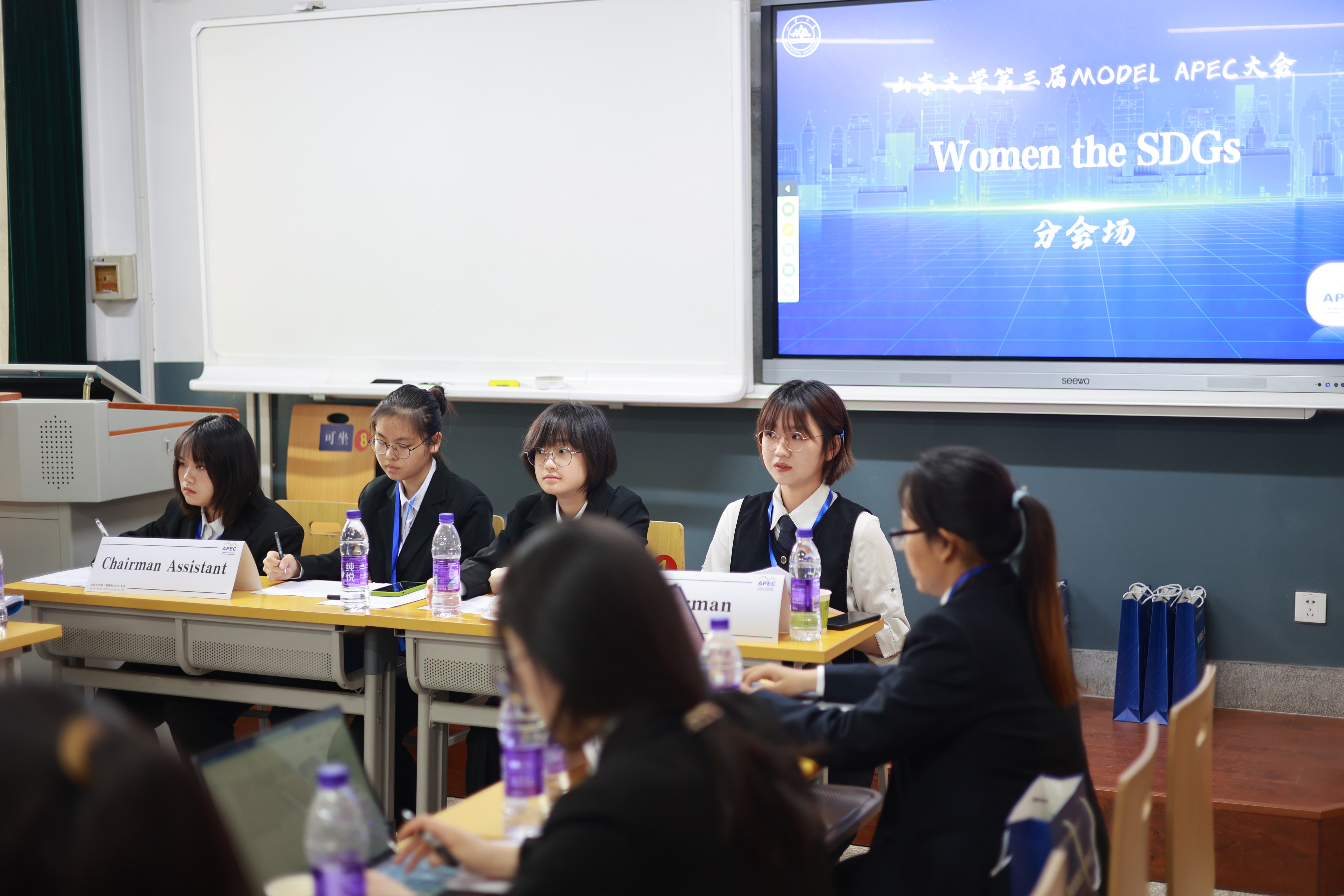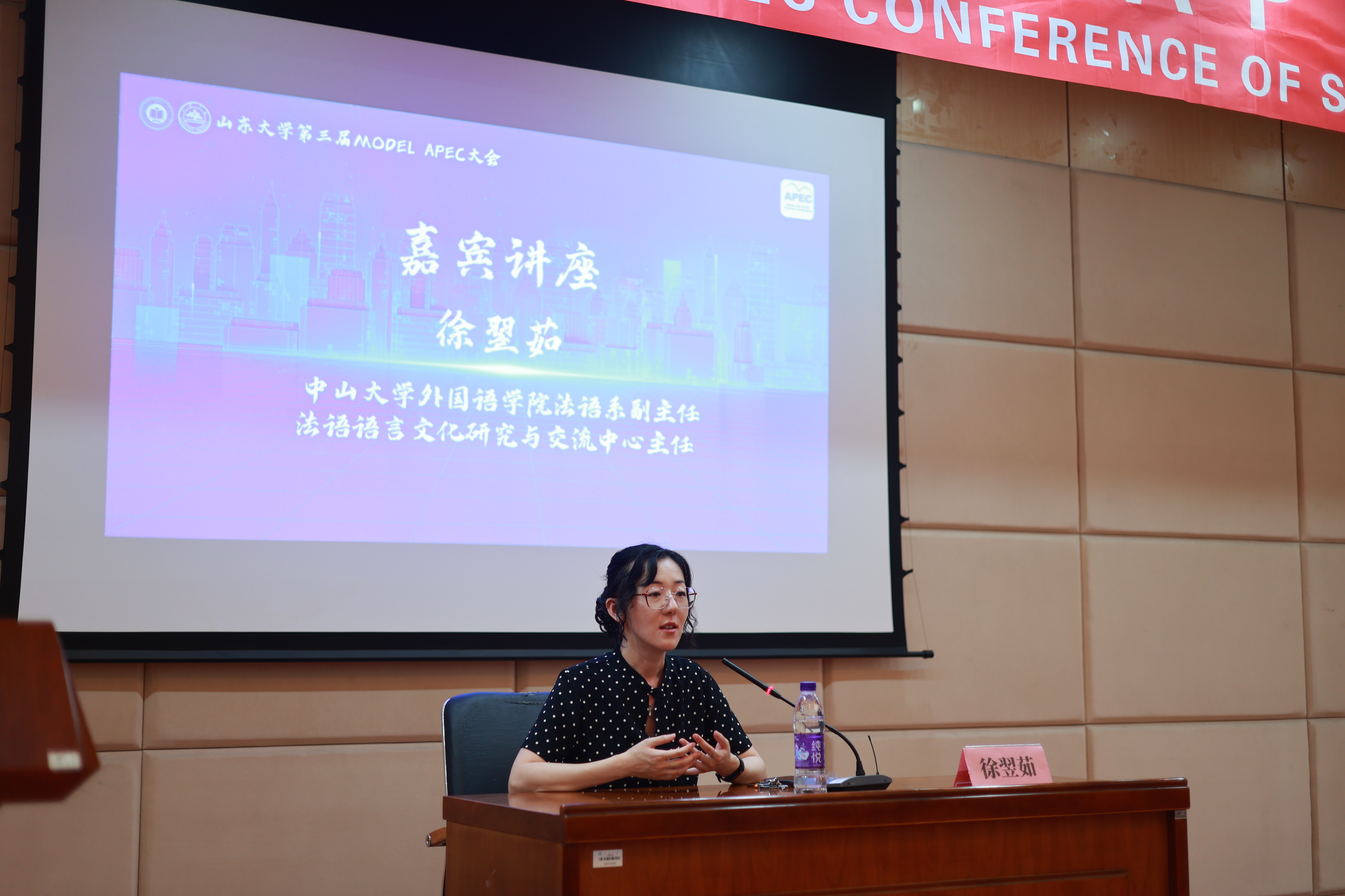2023年5月20日,由新葡萄88805官网学生就业创业指导中心、新葡萄88805官网国际事务部、共青团新葡萄88805官网委员会、新葡萄88805wCO主办,新葡萄88805wCO学生会、新葡萄88805官网学生全球治理与国际组织发展协会、新葡萄88805官网学生国际交流协会、新葡萄88805官网第三届模拟APEC大会组委会承办的新葡萄88805官网第三届模拟APEC大会在新葡萄88805官网洪家楼校区隆重举行。中山大学新葡萄88805wCO法语系副主任、法语语言文化研究与交流中心主任徐翌茹,第十二届亚太青年模拟APEC大会全国总冠军、外交学院2019级本科生张元世男,新葡萄88805wCO党委副书记魏鲁鸿,新葡萄88805wCO团委书记朱蕾受邀出席大会开幕式,微软大中华区教育行业发展总监、北京市环亚青年交流发展基金会、MODEL APEC联合创始人、APEC Women Connect原执行秘书长郭贝思以视频形式参会。新葡萄88805wCO教授张溪、副教授高云、助理研究员谢冰冰共同担任本次比赛评委。