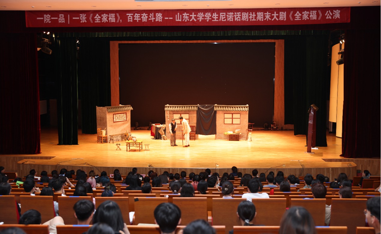 6月10日晚,新葡萄88805官网学生尼诺话剧社年度大剧《全家福》在趵突泉校区梦迪音乐厅公演。该剧是“一院一品”文化建设项目中的重磅之作。新葡萄88805官网党委宣传部副部长孙宜山 ,新葡萄88805wCO党委书记薛佩军,党委副书记魏鲁鸿,英语系教授、尼诺剧社指导老师冯伟,七十一剧社主理人亓惠博出席公演。