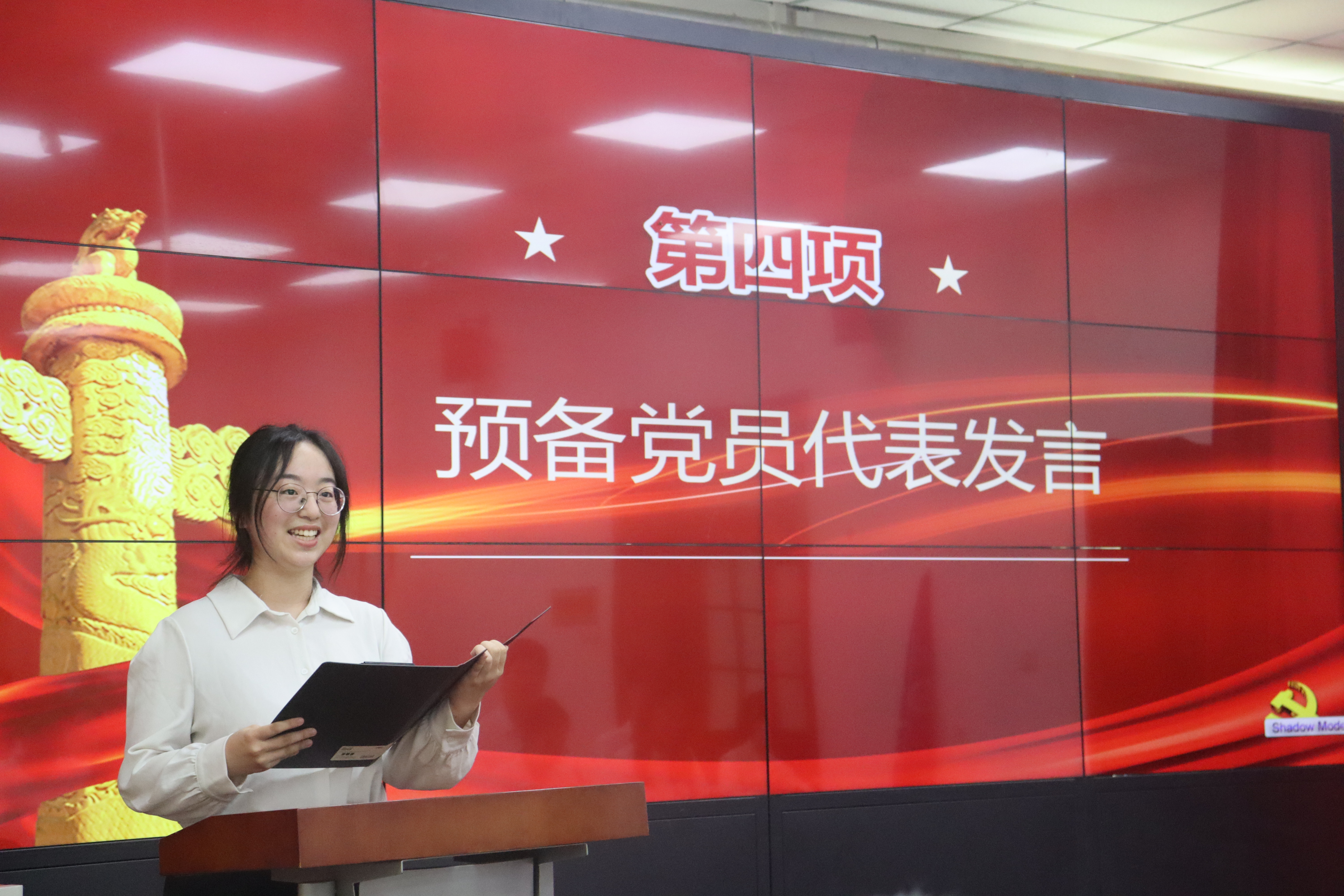2021级英语与法学双学位班的刘一玮代表全体预备党员发言,她直言自己在方才宣誓时心情无比激动,将把入党誓词作为自己崇高的追求、毕生的修养和终身的实践,同时积极传播党的历史、党的精神,用科学理论武装头脑,不断提升思想境界。以身作则勇于担当,争做光荣先锋模范,为社会发展大局贡献出属于自己的青春力量。
