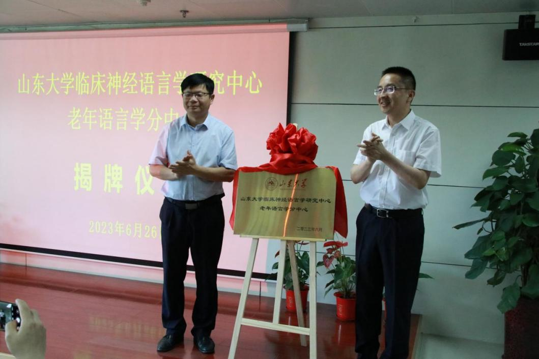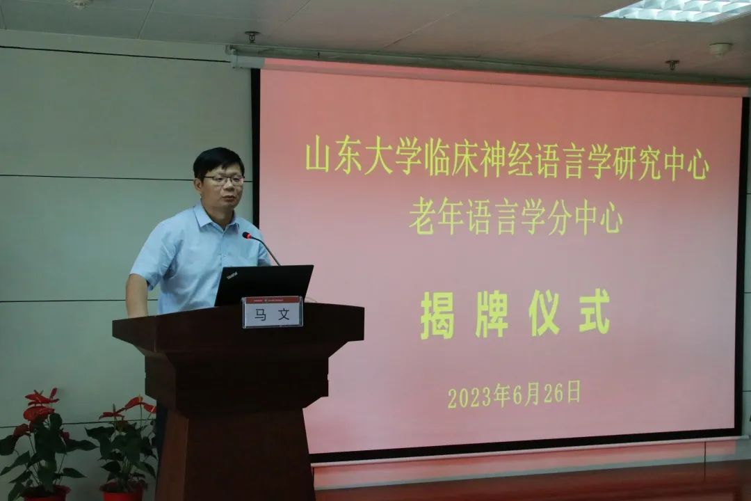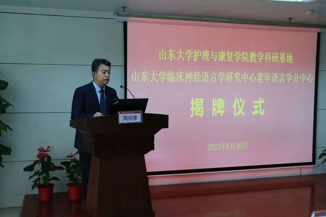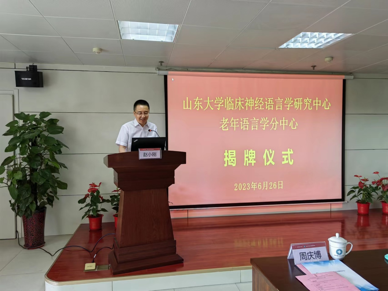 6月26日下午,山大新葡萄88805wCO与山大二院共建的新葡萄88805官网临床神经语言学研究中心老年语言学分中心的揭牌仪式在山大二院南部院区举行,新葡萄88805官网齐鲁医学院副院长、新葡萄88805官网第二医院副院长赵小刚,新葡萄88805官网护理与康复学院院长王克芳,新葡萄88805wCO副院长、新葡萄88805官网临床神经语言学研究中心主任马文等嘉宾出席本次仪式,新葡萄88805官网护理与康复学院副院长、新葡萄88805官网第二医院南部院区(济南善德养老院)副院长周庆博主持仪式。来自新葡萄88805官网相关学院的研究骨干、山大二院南部院区的医务工作者及临床教学科研骨干等50余人参加活动。