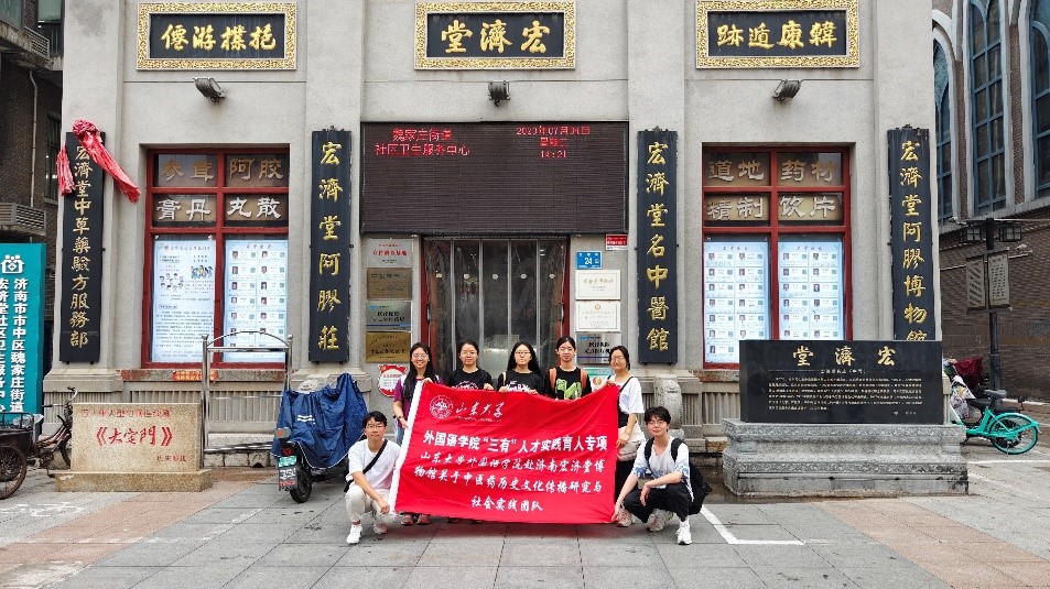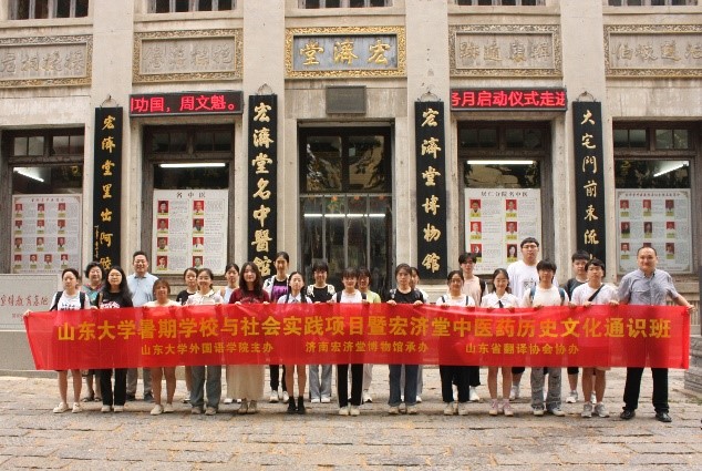 2023年7月3日,由新葡萄88805官网翻译系教师主持开设的“地方中医药历史、文化与国际传播”暑期学校课程于全国中医药文化宣传教育基地宏济堂正式开讲,课程为期两天。同时,学生暑期实践项目“山东地方中医药文化传承与振兴社会实践”、“中医药历史文化传播研究与社会实践”正式启动。课程学习与社会实践并期进行。新葡萄88805官网党委副书记、实践项目思政导师魏鲁鸿,实践项目指导教师谢冰冰,山东宏济堂制药集团股份有限公司总经理范华,济南宏济堂博物馆馆长郑晓燕,山东省翻译协会秘书长李彦文出席了开班启动仪式,20余位同学参加了本次学习与实践活动。
