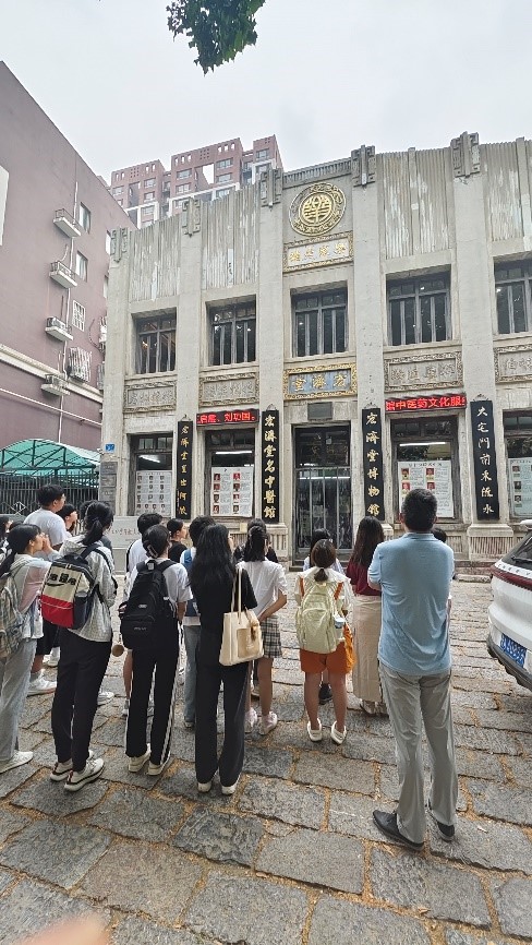 7月4日,同学们在谢冰冰老师的带领下,学习了与中医药相关的国内外主要形势与政策,中医国际传播的基本现状,以及中医历史文化调研的基本方法和途径。随后,同学们参观了宏济堂中号,深入了解宏济堂服务社会的现状及其对于充实社会医疗资源所做出的重要贡献。