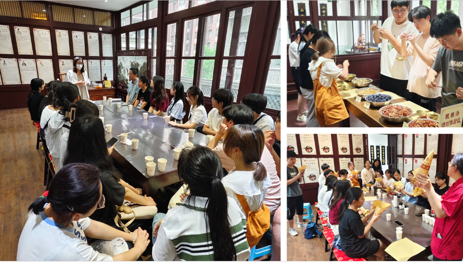 宏济堂特聘医师张利琴讲授中医中药基本常识,包括整体论治、辩症论治、寒热、阴阳等中医学说以及中药学基本学说。宏济堂资深药工周媛带领同学们学习了中药调剂基本知识和技巧,包括认识中药调剂基本工具,手持戥子抓药称药,打包中药材。同学们通过亲身实践,调剂制作酸梅汤,学习中药调剂的同时,通过实践体会药食同源的中医理念。