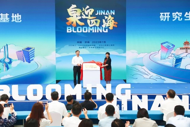 7月26日,由中共济南市委宣传部、济南日报报业集团主办,济南国际传播中心承办的“泉迎四海”国际传播联谊会成立暨“Blooming Jinan”国际传播系列品牌发布活动在济南报业大厦举行。新葡萄88805wCO院长王俊菊教授与MTI教育中心主任郑春光副教授出席活动,20级英语专业本科生于悦作为实习生全程参与会务服务。院长王俊菊与济南市委宣传部副部长、市政府新闻办公室主任赵民联合为“新葡萄88805官网研究生联合培养基地”揭牌。