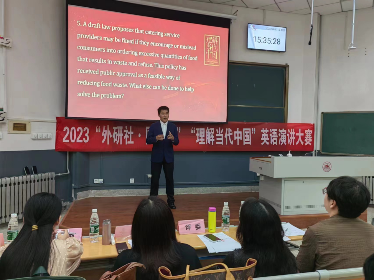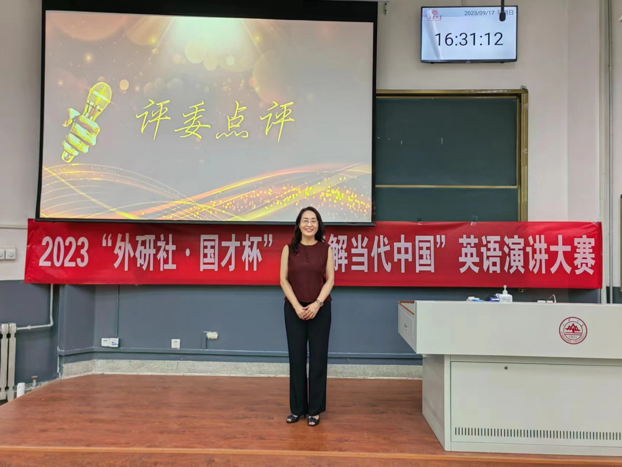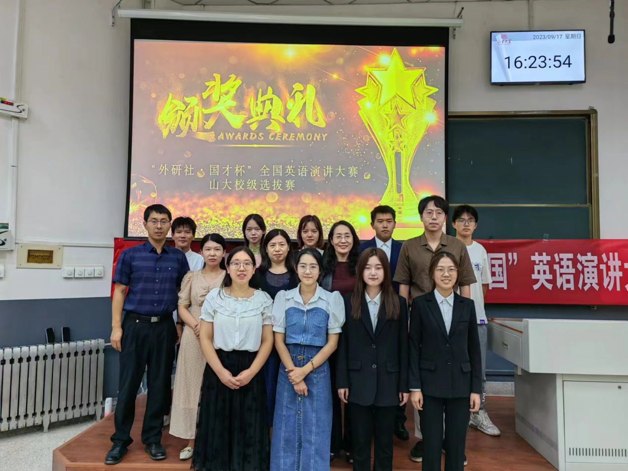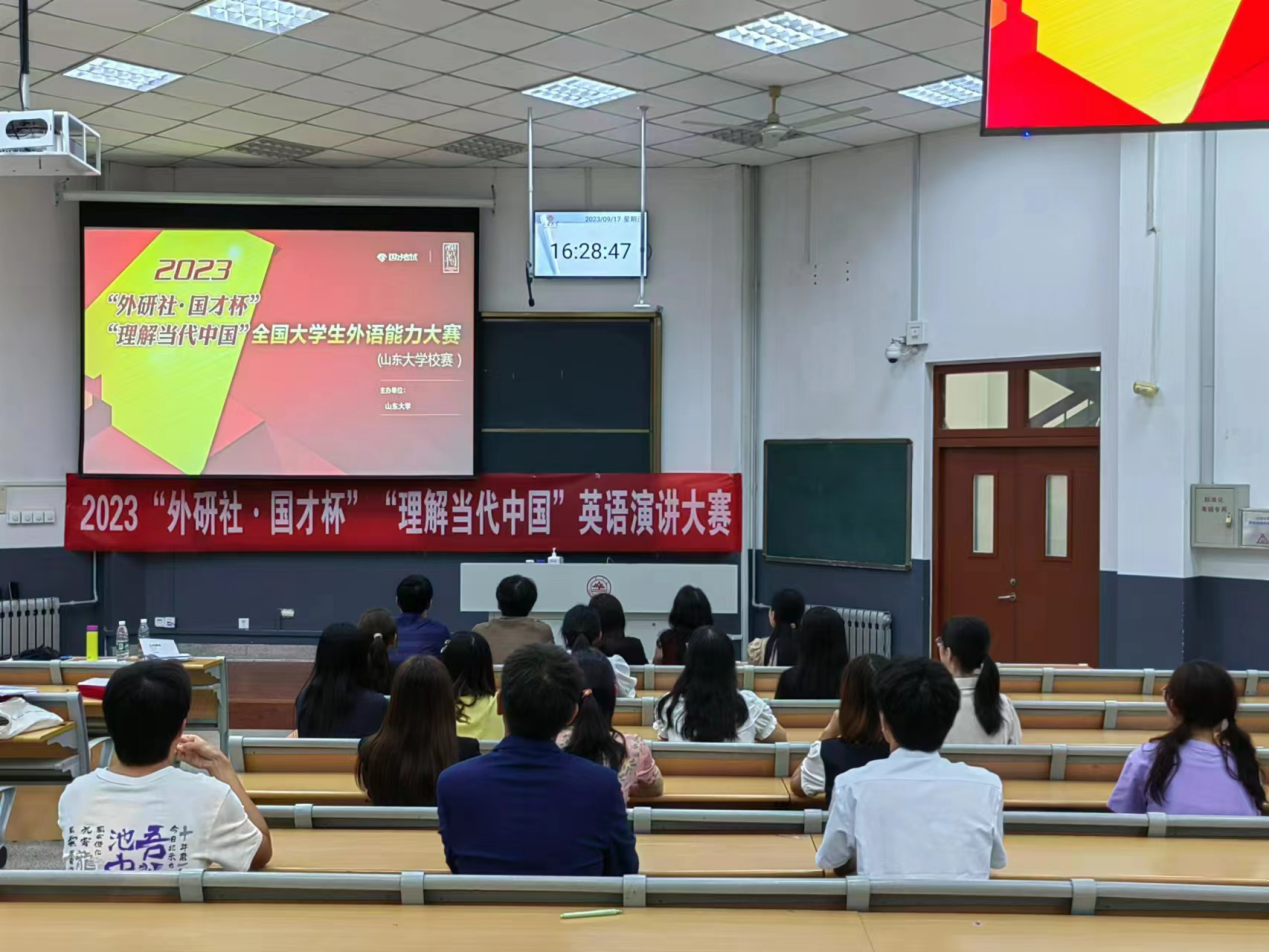 2023年9月17日下午,“外研社·国才杯”“理解当代中国”全国大学生外语能力大赛英语演讲比赛之新葡萄88805官网校选赛在洪家楼校区如期举行。新葡萄88805官网外语应用与全球胜任力提升创新平台的高云老师、闫秋燕老师、林殿芳老师、姜仁风老师及特邀新葡萄88805官网访问学者商培培老师出席了此次比赛,并担任大赛评委。