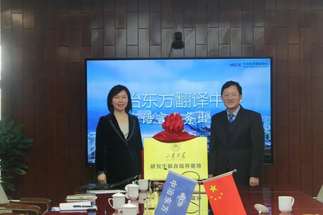 11月9日,新葡萄88805wCO与中冶东方工程技术有限公司翻译中心共建研究生联合培养基地揭牌仪式在青岛顺利举行。新葡萄88805wCO党委书记薛佩军、党委副书记刘华、MTI教育中心主任郑春光,中冶东方工程技术有限公司翻译中心主任赵忠会、生产运营总监白玉东、质控主管魏有为、客户部经理李敏及相关译员、实习生出席仪式,双方就人才培养、学科建设、资源互补、专业型翻译博士学位点建设等话题展开深入交流。