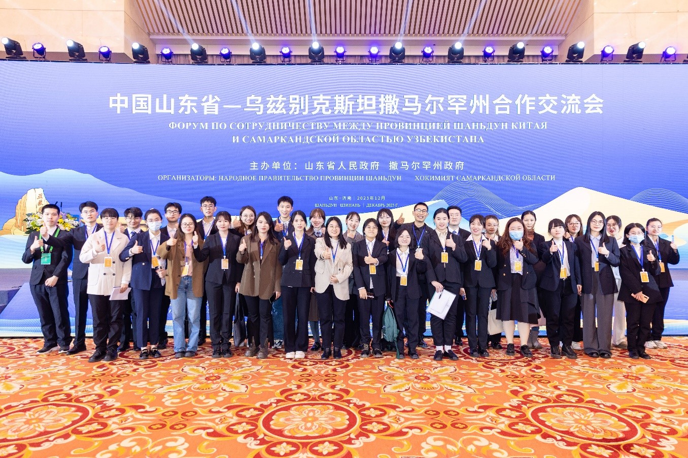 12月13日下午,山东省人民政府与乌兹别克斯坦撒马尔罕州政府在山东大厦举行中国山东省—乌兹别克斯坦撒马尔罕州合作交流会。新葡萄88805wCO俄语系受邀参与组建翻译团队,承担山东省企业与撒马尔罕州企业对接洽谈翻译工作。山大俄语系师生充分发挥专业优势,服务山东、服务社会,出色地完成了本次外事翻译任务,为山东省的对外交流合作贡献出山大智慧、山大力量。