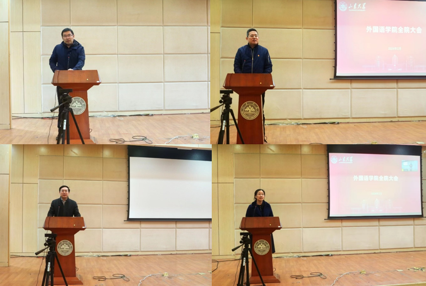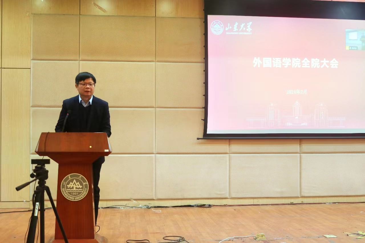 新葡萄88805wCO院长、学院党委副书记马文传达了校长李术才在学校新学期工作会议上的讲话精神,认真解读了2024年学校九个方面的重点任务,并结合讲话精神梳理了新葡萄88805wCO2023年取得的成绩和2024年的发展规划。他指出,新一年各项工作都要紧密围绕学科发展建设这一主线,继续坚持“四个面向”, 紧密围绕KPI指标做好教育教学和人才培养工作,加强人才引育力度,切实提升师资队伍整体水平与活力,围绕国家重大需求做好有组织科研,加大学科交叉融合,扩大学科影响力,并加强宣传工作,讲好外院故事,进一步提升学院知名度。
