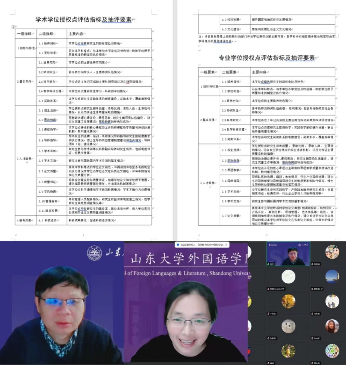 本次外语学科学位授权点合格评估范围包括外国语言文学博士学位授权点和翻译硕士学位授权点,同时涉及3个培养单位,评估工作时间紧,任务重。学院评估领导小组高度重视,及时召开合格评估工作启动会。学院会以此次学位授权点合格评估为契机,以研究生培养和学位授予质量为重点,全面诊断查找影响质量的突出问题,聚焦主流,凝练特色,提升人才培养质量和学科建设水平,促进研究生教育内涵式发展。
