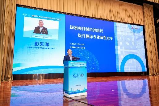 山东师范大学翻译硕士中心主任徐彬、北京第二新葡萄88805wCO高级翻译学院院长彭天洋、上海交通大学外语学院翻译系副主任管新潮分别就“AI驱动的翻译教育模式创新”“项目制培养提升师资水平”“知识库建设与人才培养”等议题分享前沿观点。北京外国语大学高级翻译学院院长任文提出“创新实践、跨界融合”的翻译博士专业学位培养范式,强调翻译教育需以职业能力培养为核心,服务国家翻译能力建设。
