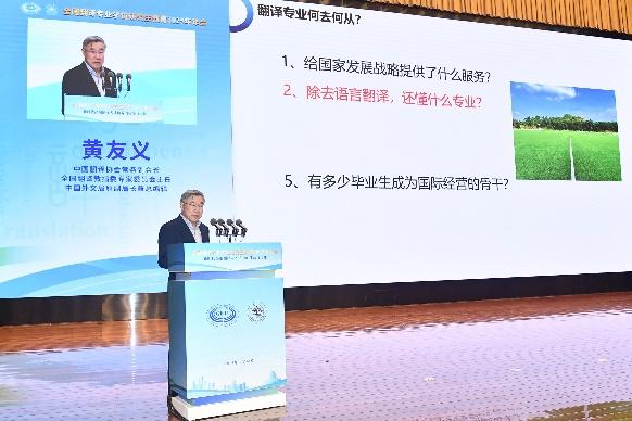 主旨报告环节,中国翻译协会常务副会长、全国翻译专业教指委专家委员会主任黄友义以“智能语言风起云涌,翻译驶入高端发展新赛道”为题,强调翻译行业要把握智能语言发展机遇,着力培养实践型、复合型高端翻译人才;上海外国语大学原党委书记、全国翻译专业教指委副主任委员姜锋围绕“重塑翻译认知,回应时代挑战”,提出翻译教育创新要立足时代需求,推动认知、体系与能力的协同跃升;湖南师范大学原党委书记、全国翻译专业教指委副主任委员蒋洪新以“质量为上,行稳致远”为题,呼吁翻译行业需始终以质量为根本,从思想重视、特色发展、队伍建设、实践导向四方面同时发力。