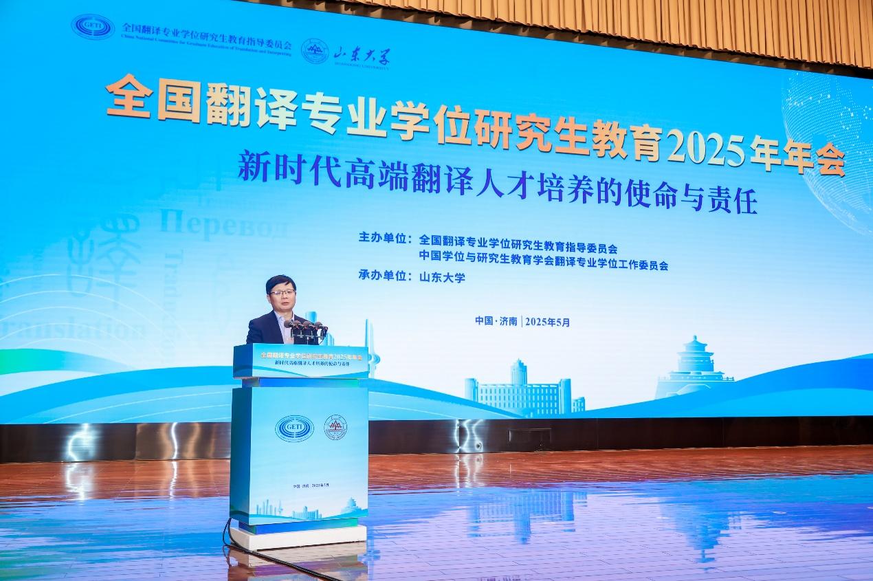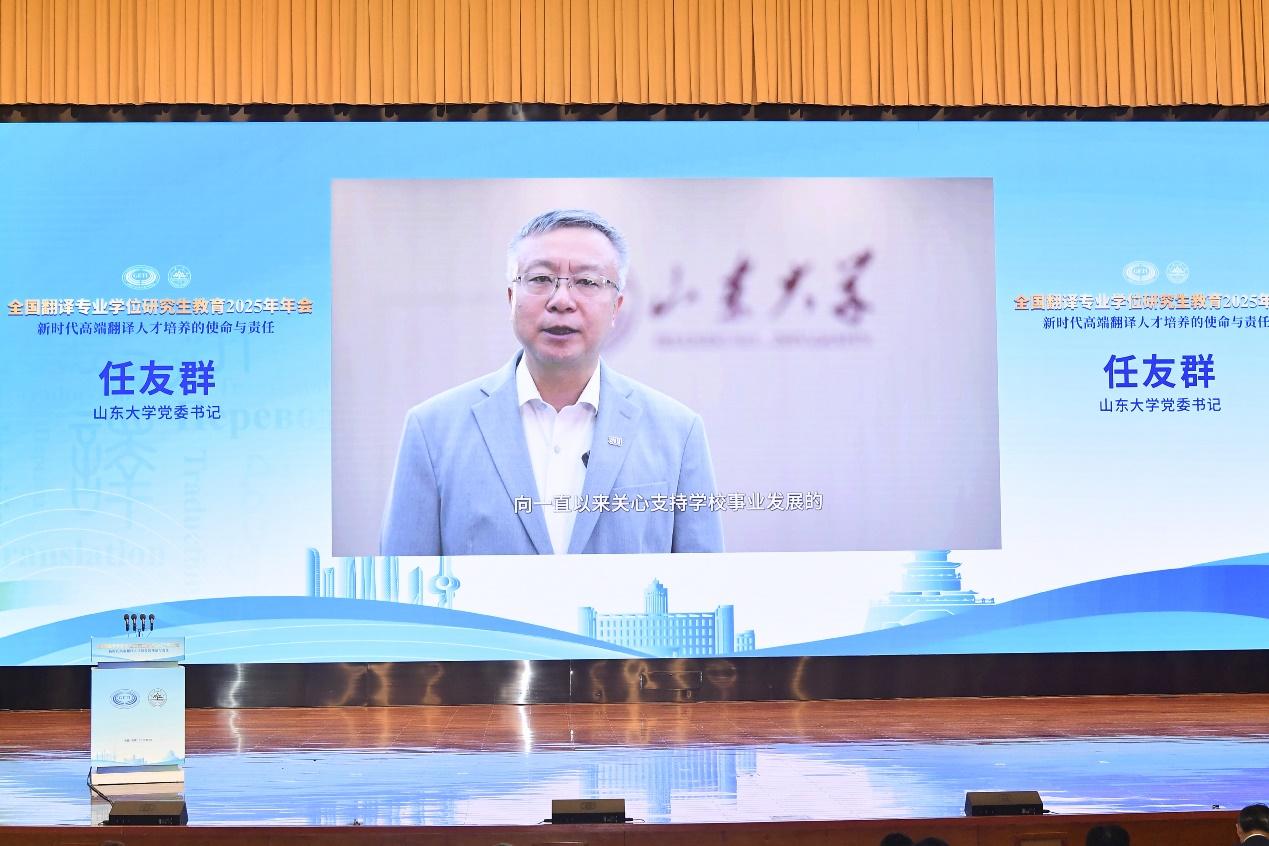5月18日,由全国翻译专业学位研究生教育指导委员会、中国学位与研究生教育学会翻译专业学位工作委员会主办,新葡萄88805官网承办的全国翻译专业学位研究生教育2025年年会在新葡萄88805官网召开。校党委书记任友群视频致辞,中国外文局副局长、全国翻译专业教指委主任委员于涛,山东省教育厅副厅长王浩出席开幕式并致辞。开幕式由新葡萄88805官网常务副校长吴臻主持。