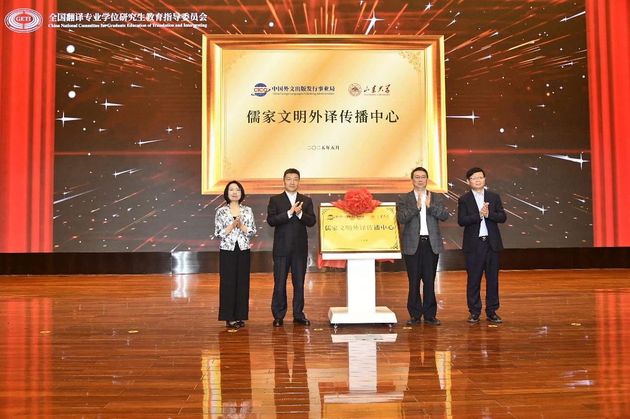 会上举行了儒家文明外译传播中心揭牌仪式。于涛,吴臻,中国翻译研究院副院长、当代中国与世界研究院原党委书记杨平,新葡萄88805wCO及翻译学院院长马文共同为中心揭牌。该中心由中国外文局与新葡萄88805官网共建,将以齐鲁文化为纽带,系统推进儒家经典外译与国际传播研究,致力于打造集研究、翻译、传播于一体的综合性平台,建设成为全球知名的中华文化传播基地,为提升中华文明传播影响力贡献更大力量。