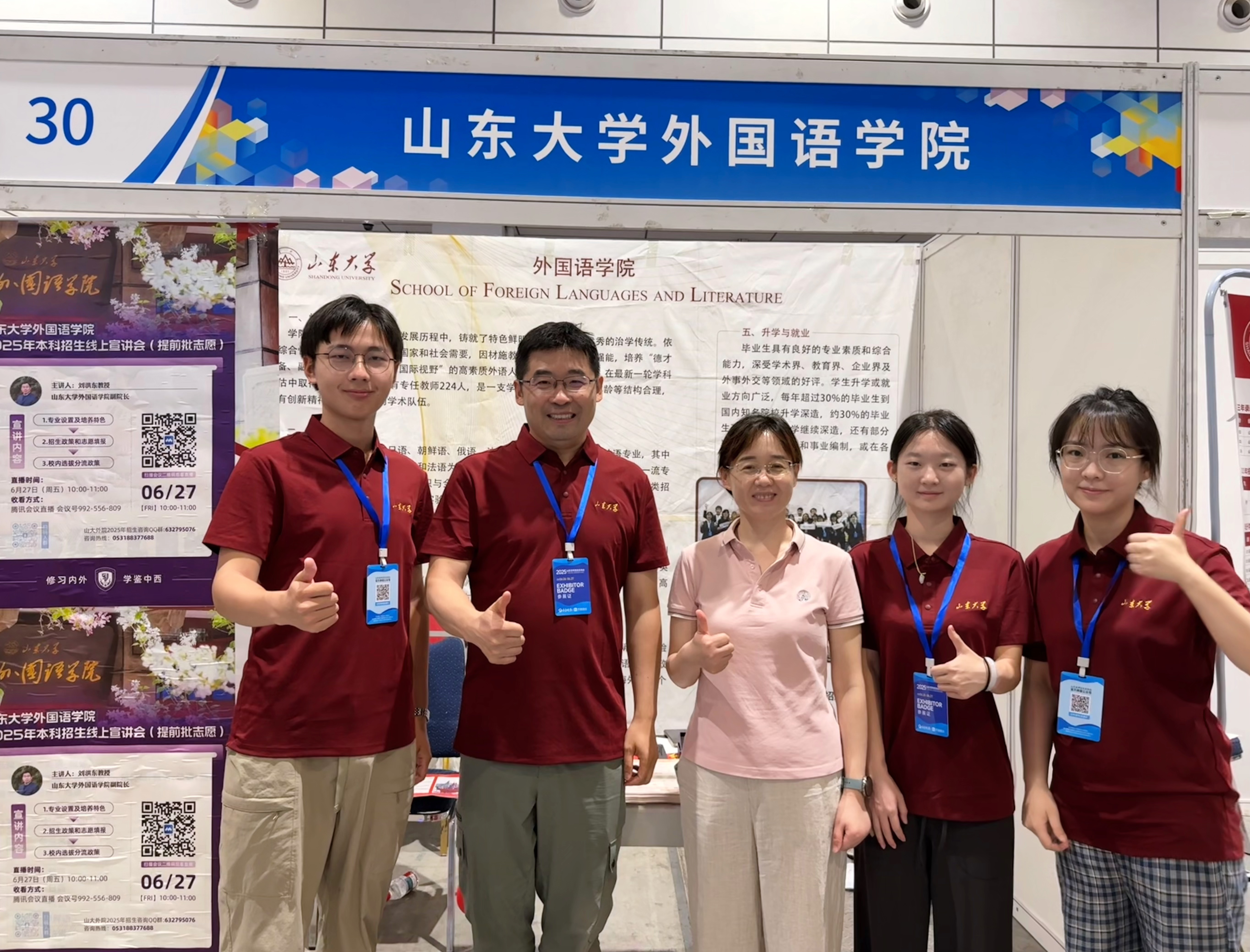 6月26日、27日,刘洪东带领本科教学秘书、学生志愿者在山东国际会展中心高招会现场开展外语专业招生宣传,为考生及家长答疑解惑并提供报考建议。6月27日,刘洪东开展线上宣讲会,系统解读新葡萄88805wCO的专业设置、培养特色、招生政策和校内分流机制。