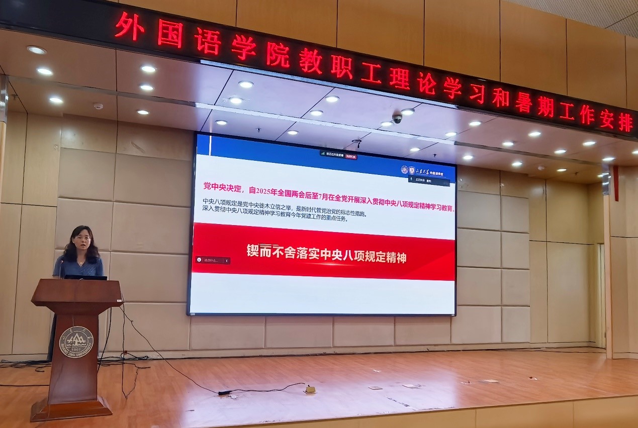 本次全院大会既是对过往工作的全面梳理,更是对未来发展的谋篇布局。学院将以此次会议为契机,凝聚全体教职工智慧与力量,以更高站位、更实举措推动学院事业高质量发展,为学校“双一流”建设贡献外语力量。
