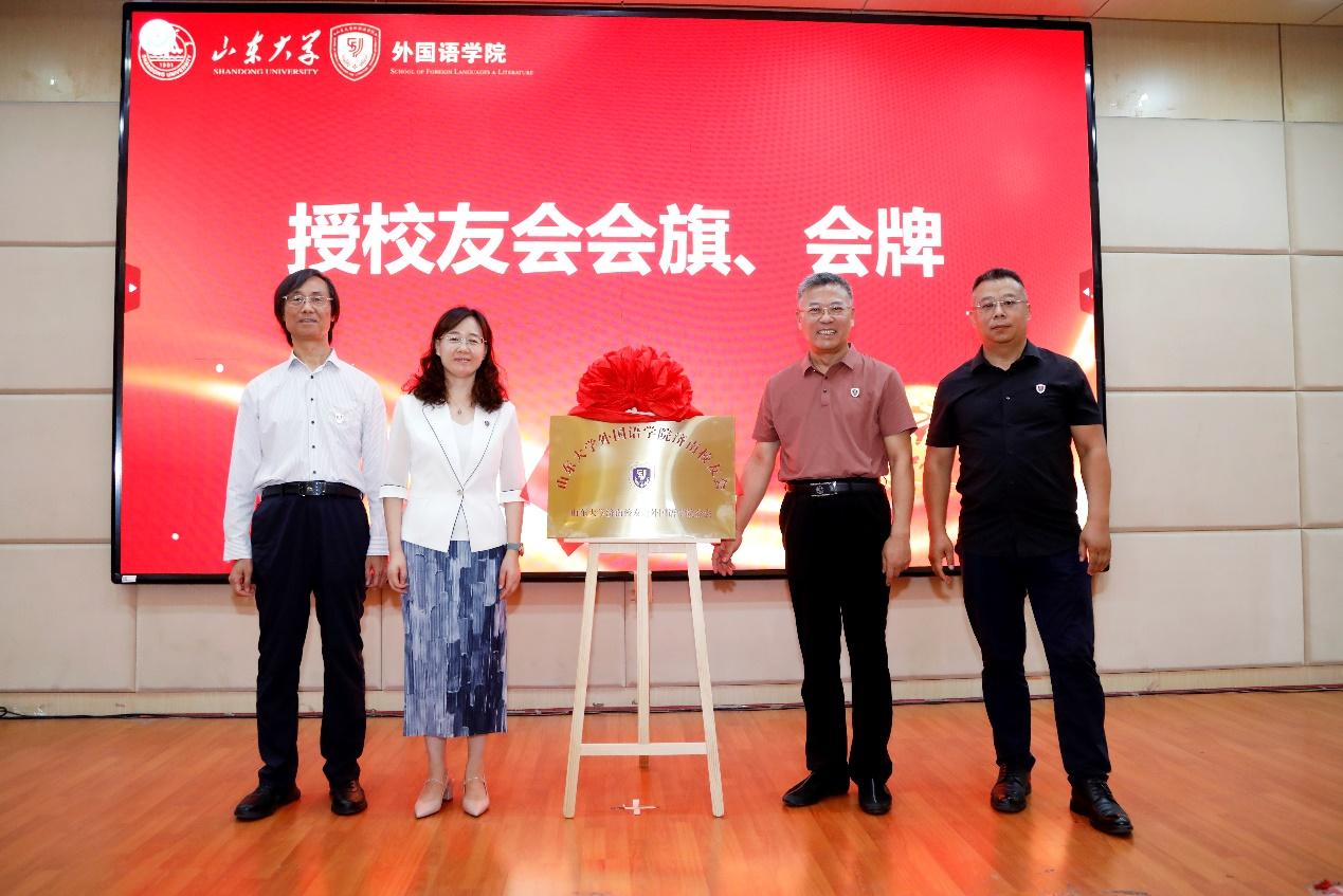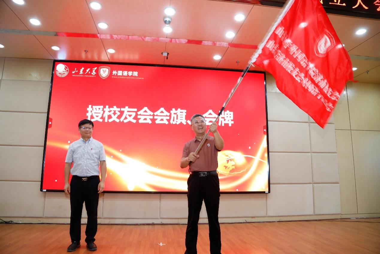 马文为校友会授会旗,李宇兵、刘华为校友会授会牌。