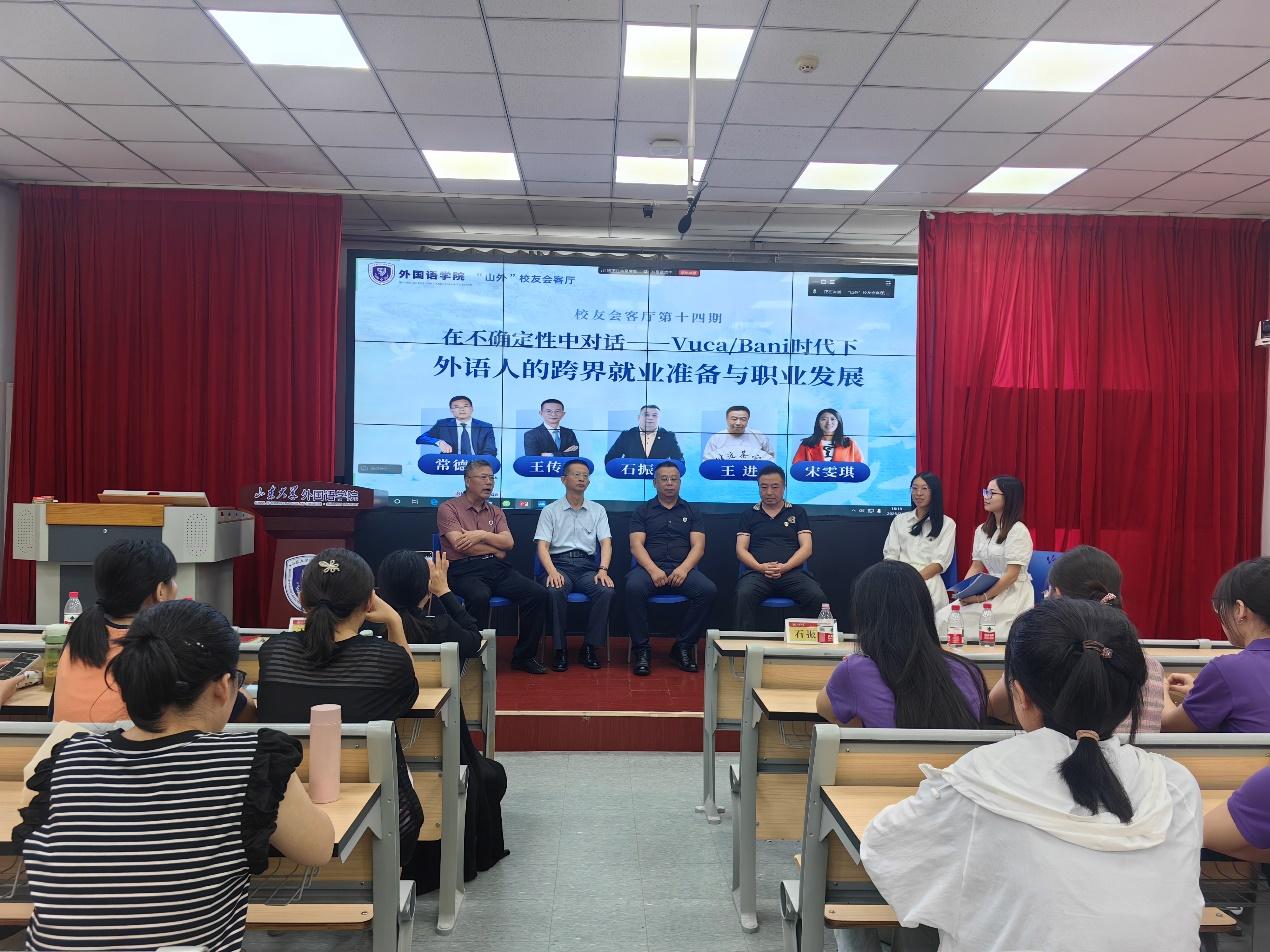 下午,学院组织举办“山外”校友会客厅,五位校友围绕“在不确定性中对话——Vuca/Bani时代下外语人的跨界就业准备与职业发展”的主题作了交流分享。活动期间,校友们还集体参观了新葡萄88805官网校史馆、校友馆。新葡萄88805wCO在法新楼、七号楼前设置了特色打卡点,校友们纷纷拍照打卡,定格重返校园的美好瞬间。