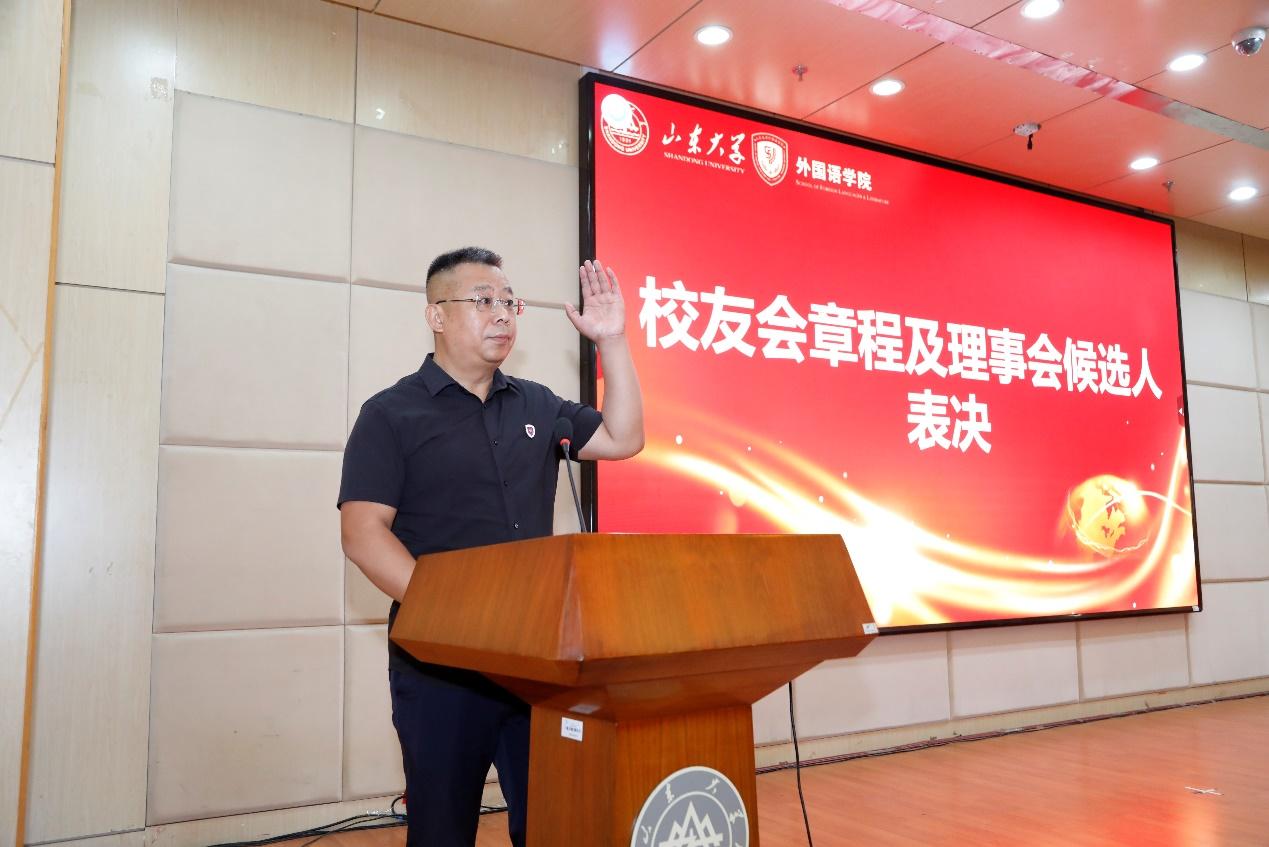大会听取了校友会筹备情况介绍。刘华宣读了关于成立新葡萄88805wCO济南校友会、新葡萄88805官网济南校友会新葡萄88805wCO分会的批复。会议审议通过了《新葡萄88805wCO济南校友会章程》,选举产生了第一届理事会成员。推举1982级日语专业校友姚东方当选名誉会长,1984级英语专业校友、山东泰山文化和旅游规划院院长常德军当选会长,1991级英语专业校友、中国联合国采购促进会山东办事处主任石振武当选常务副会长,1992级朝鲜语专业校友、山东唐十安食品供应链有限公司董事长、唐十安房车露营品牌创始人、济南酒类协会红酒分会会长王进当选秘书长。
