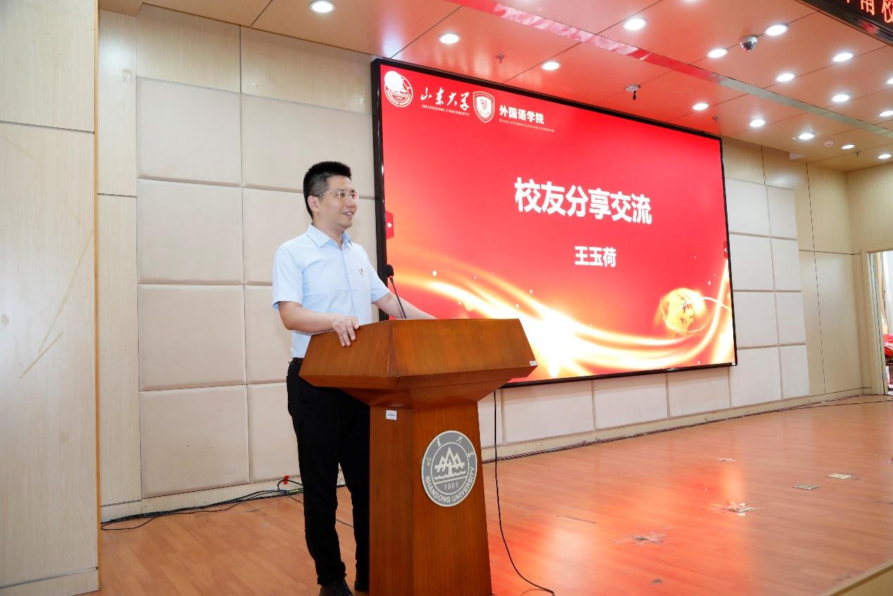 校友代表姚东方、王玉荷分别作分享交流。姚东方回顾了自己求学山大的时光,表示师者教诲、同窗情谊、山大校训始终激励着自己成长,希望校友们团结一致,积极为学院发展建言献策、贡献力量。王玉荷介绍了自己在对外经贸领域的职业发展情况,感谢在母院的专业知识积累和国际化视野拓展,期待广大校友借助校友会平台实现资源共享,也衷心祝愿母院越来越好。