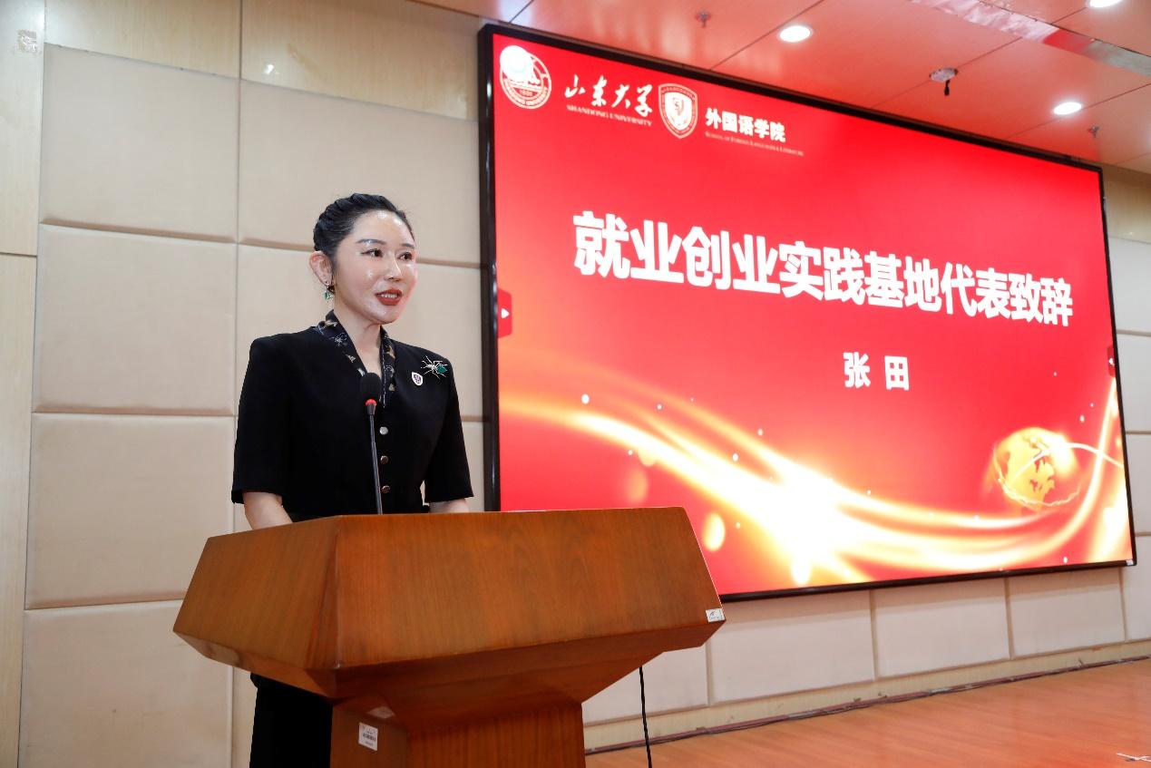 会上为九家新葡萄88805官网就业创业实践基地授牌。山东坤沅体育文化产业有限公司董事长张田作为实践基地代表发言,表示外院是自己理想启航的地方,回馈母院是义不容辞的责任,将以最大的诚意和努力把基地建设好、运营好,使其真正成为校园与社会、学习与应用、校友与校友的桥梁和纽带。