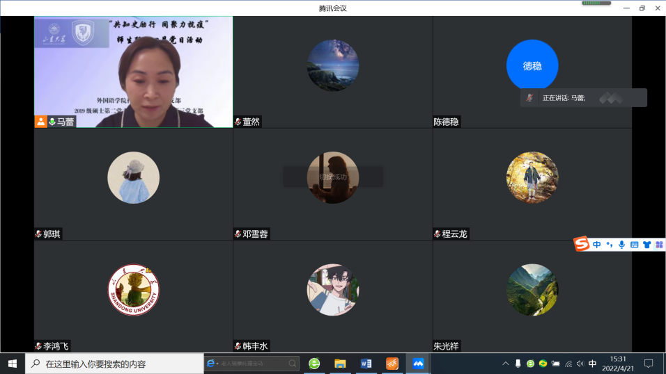 会议伊始,大家集体学习了关于疫情防控的重要指示精神。特殊时期,师生党支部和党员闻令而动、冲锋在前,切实把党的政治优势、组织优势和密切联系群众优势转化为坚决打赢疫情防控阻击战的工作优势。随后,共同学习了习近平总书记在青年干部培训班上重要讲话精神,大家备受鼓舞,深感年轻师生党员要挺起脊梁,困难面前,勇于担当。学习了《新葡萄88805官网服务山东高质量发展行动方案(2021-2025)》,了解“十四五”期间新葡萄88805官网服务山东战略的基本思路、重点任务和保障措施。